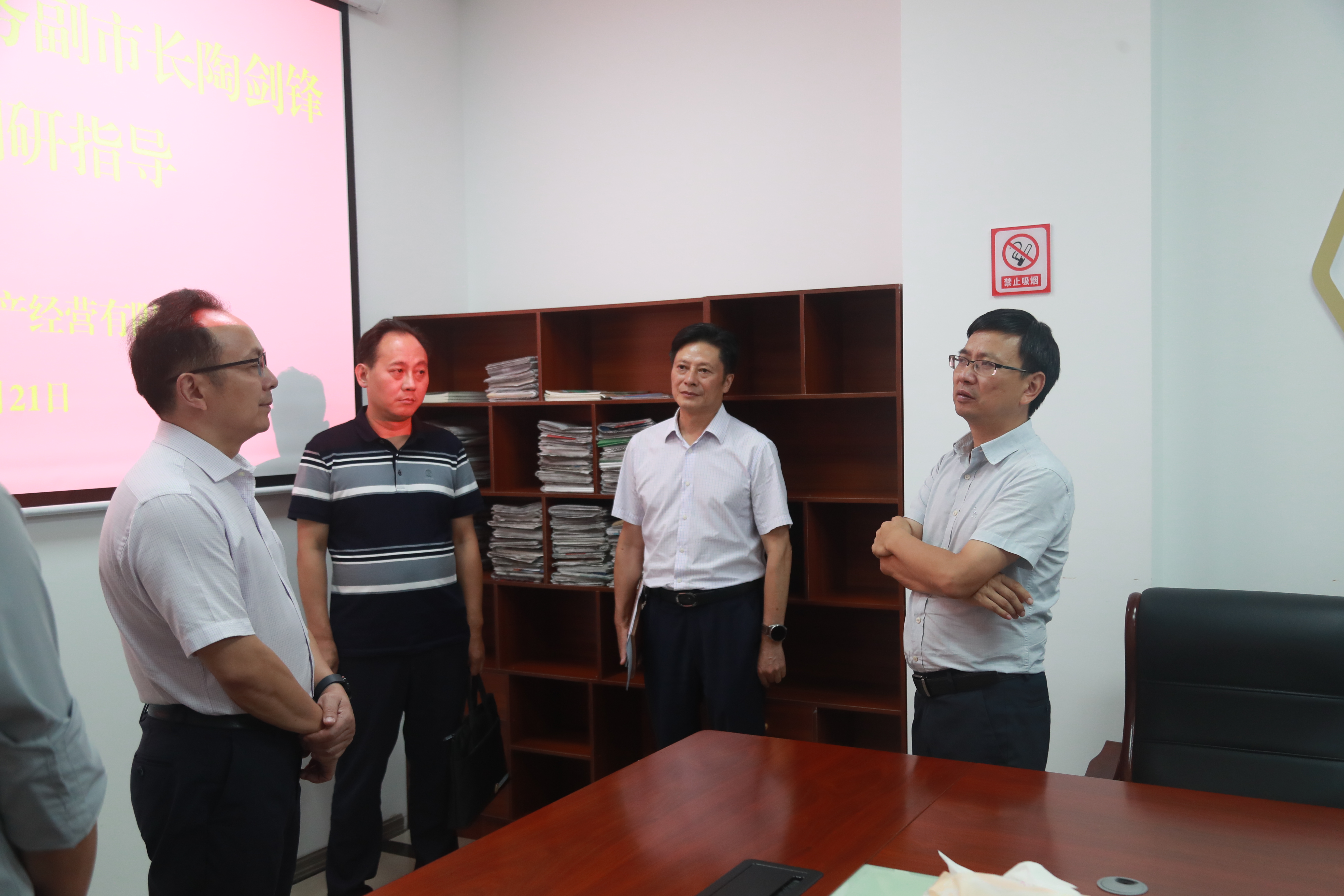 在巴中市鑫園創(chuàng)業(yè)融資擔(dān)保有限公司調(diào)研時(shí),陶劍鋒現(xiàn)場(chǎng)查看干部職工工作環(huán)境,查閱了《黨支部工作手冊(cè)》、黨員活動(dòng)記錄、黨員教育學(xué)習(xí)等方面基礎(chǔ)資料,并在黨員活動(dòng)室召開(kāi)了座談會(huì),詳細(xì)了解公司基層黨建、業(yè)務(wù)經(jīng)營(yíng)等相關(guān)工作。