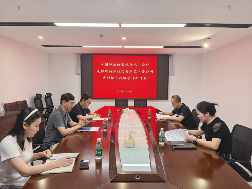 為充分發(fā)揮成都農交所四川省農村產權綜合交易平臺優(yōu)勢和郵儲銀行融資及其他綜合金融服務優(yōu)勢,通過資源互補、信息互通、協作配合,共同推進服務農村集體經濟組織和新型農業(yè)經營主體的金融支農工作。2025年7月25日下午,中國郵政儲蓄銀行巴中分行與成都農村產權交易所巴中分公司、巴中市鑫匯農業(yè)服務有限公司召開了鄉(xiāng)村振興戰(zhàn)略合作推進會。