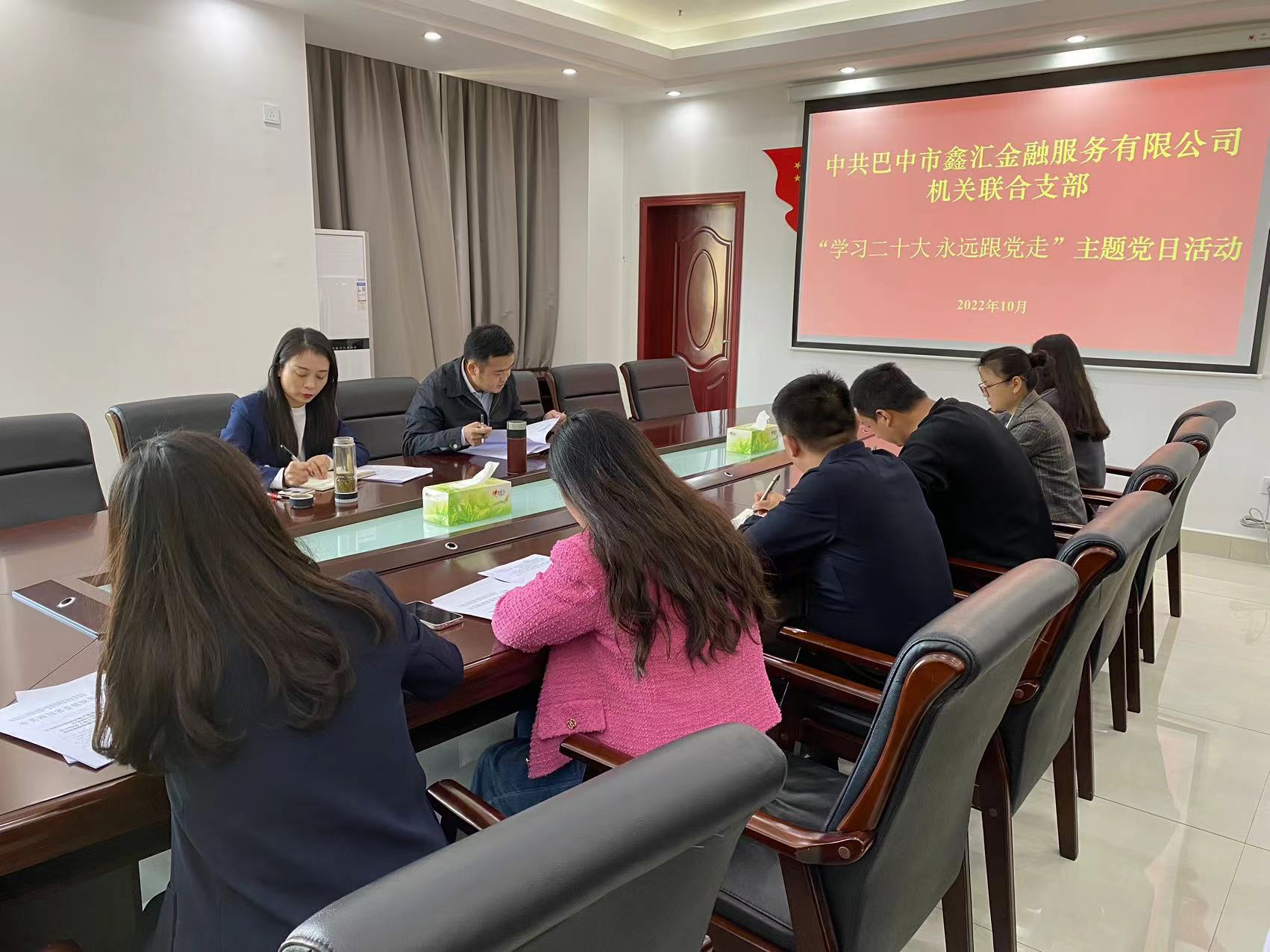 為深入學(xué)習(xí)宣傳貫徹黨的二十大精神,10月31日,中共巴中市鑫匯金融服務(wù)有限公司機(jī)關(guān)聯(lián)合支部開展“學(xué)習(xí)黨的二十大 永遠(yuǎn)跟黨走”主題活動(dòng),機(jī)關(guān)聯(lián)合支部全體黨員、公司全體職工參加。
